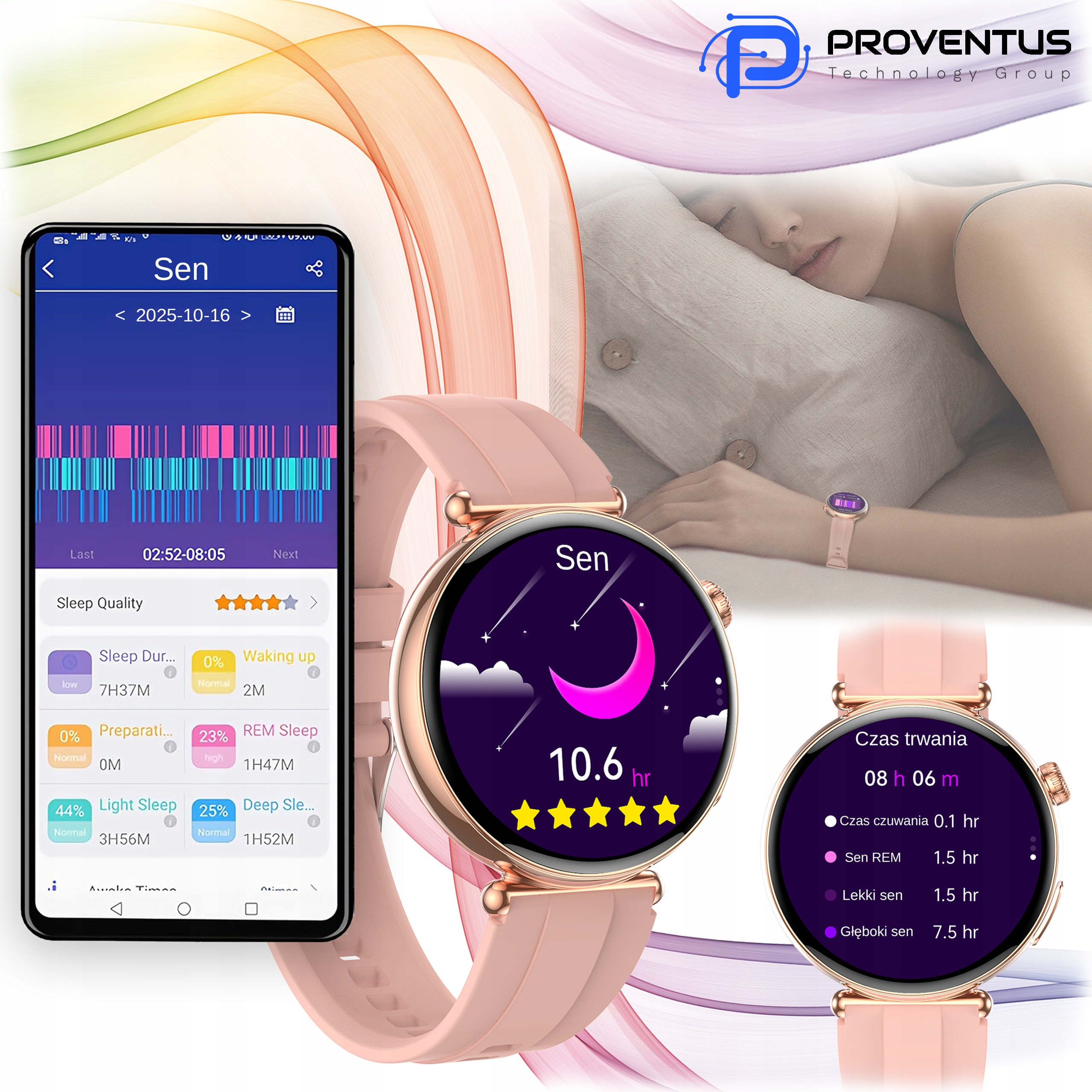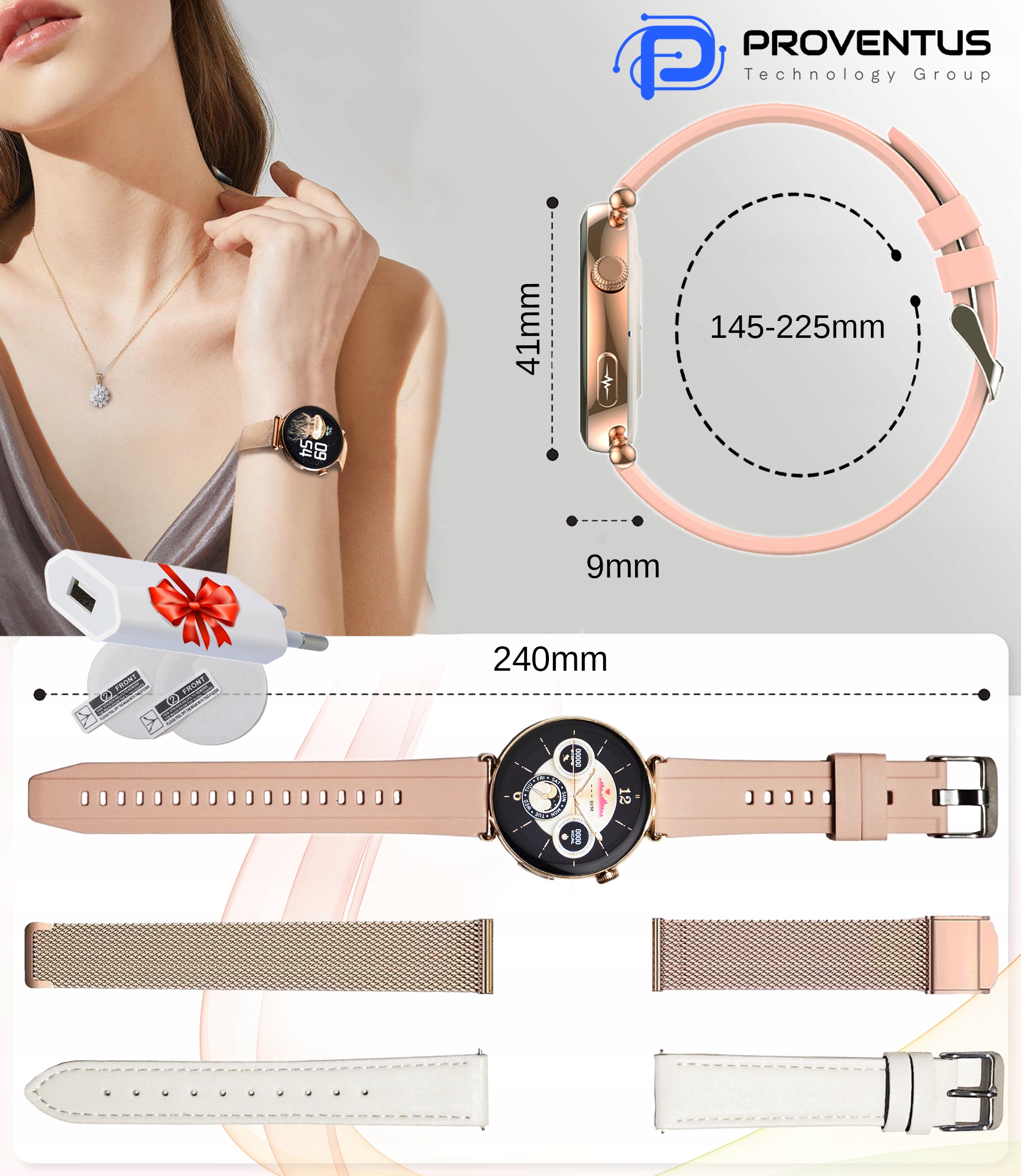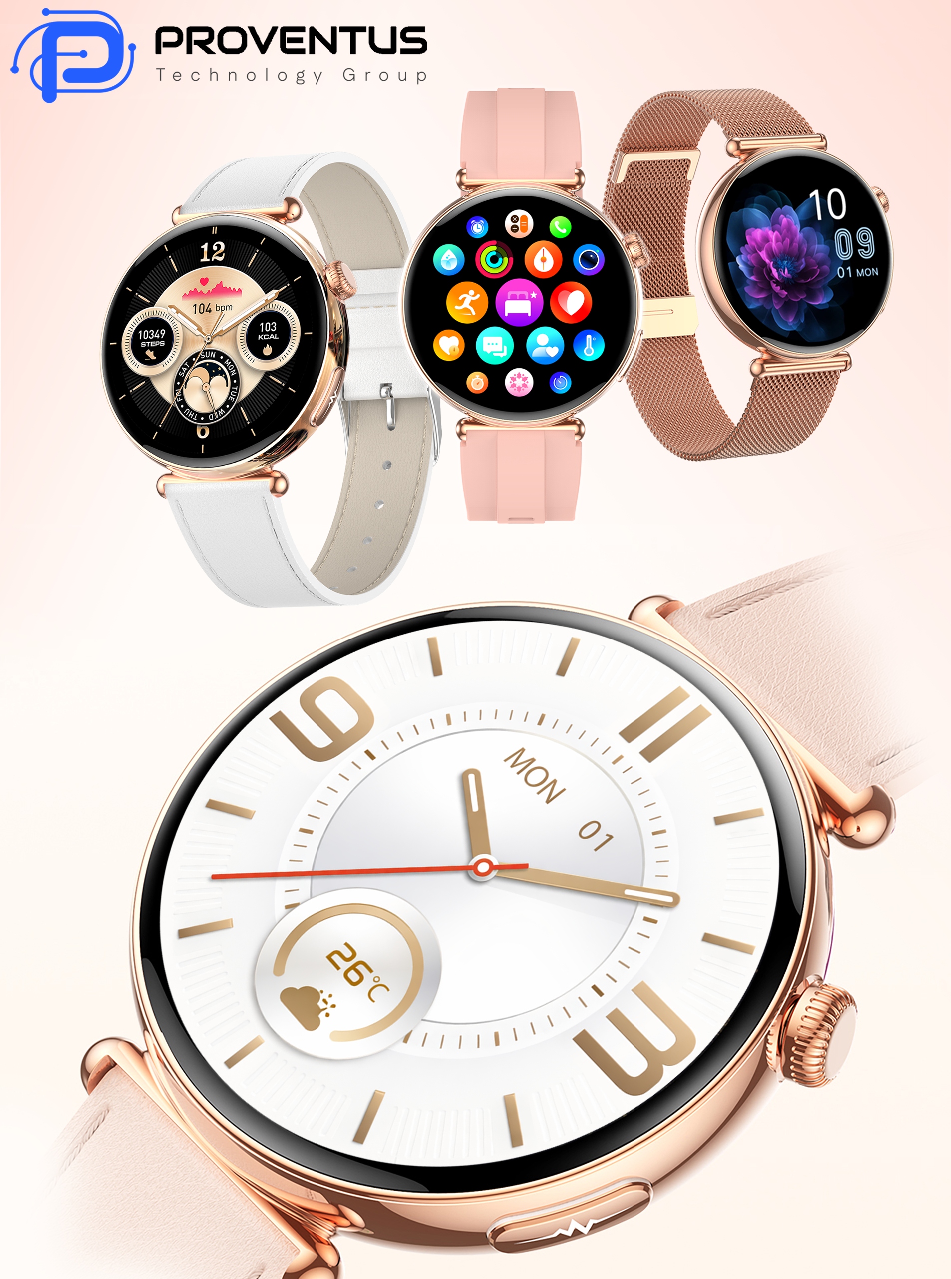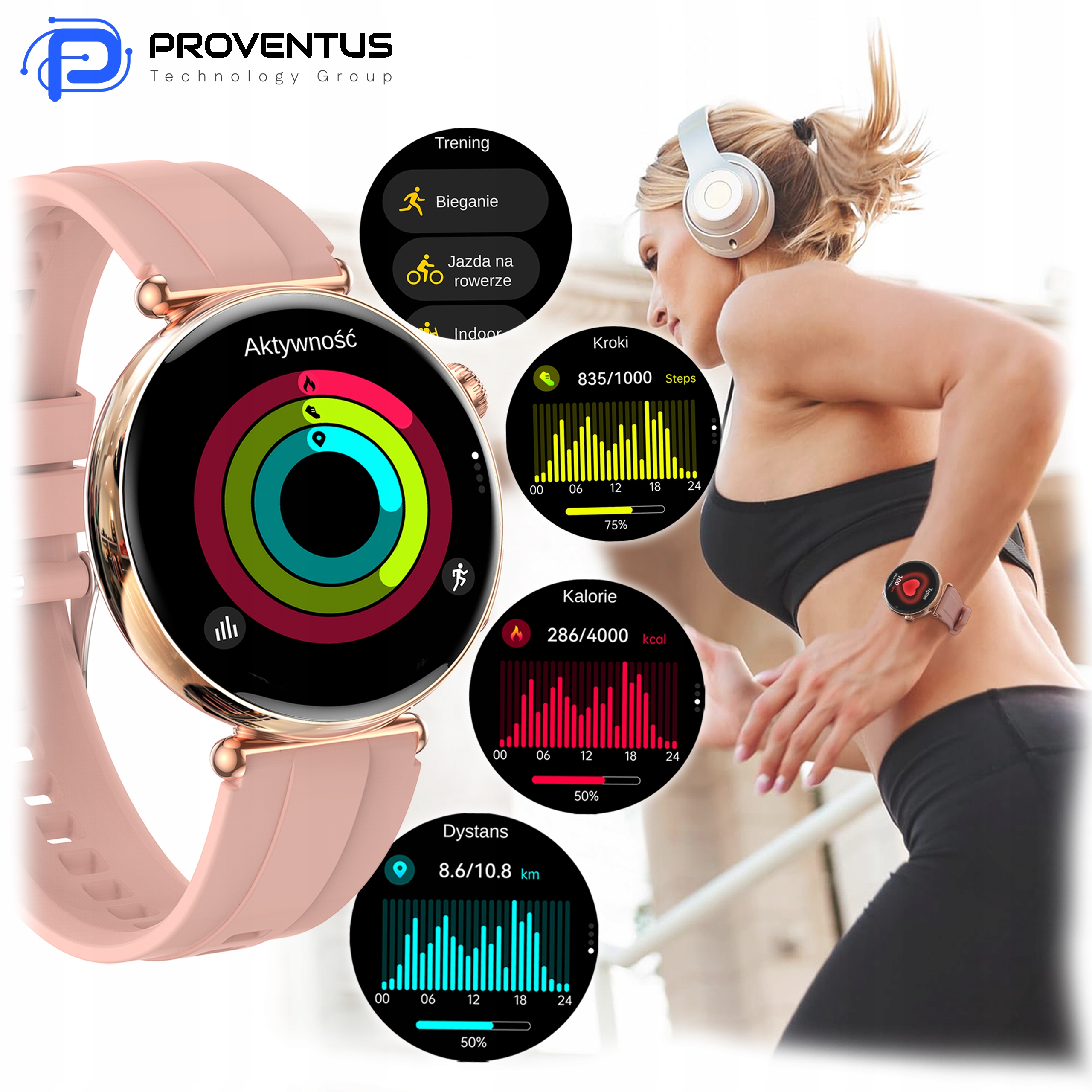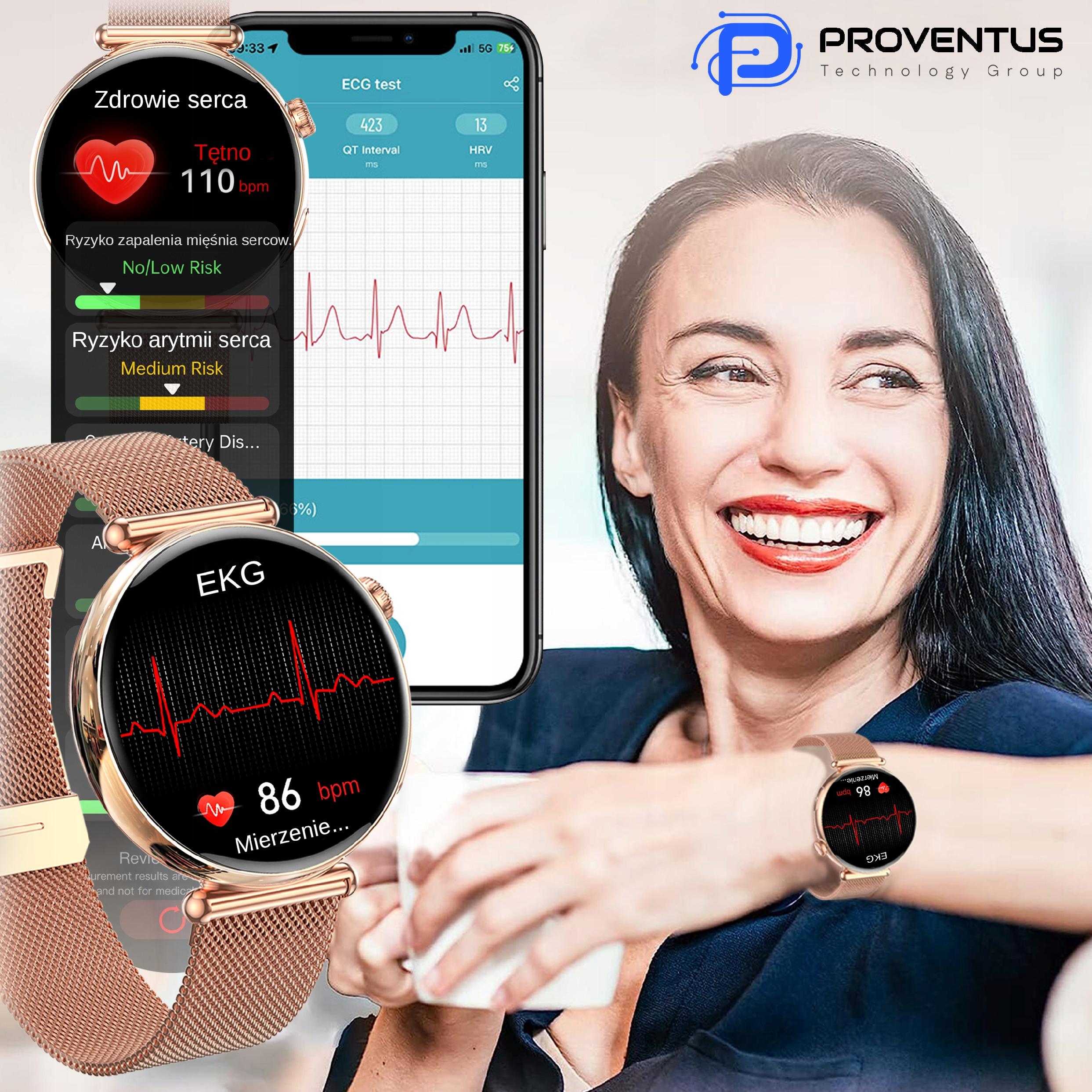 Smartwatch Damski Kardiowatch Proventus PTG491 - EKG, Funkcja Rozmów, Powiadomienia, Menu PL