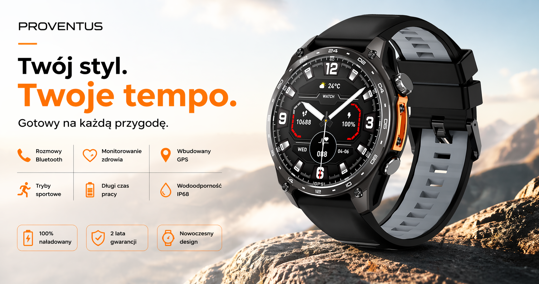 PROVENTUS to zarejestrowana polska marka, specjalizująca się w nowoczesnych smartwatchach dla wymagających użytkowników. Kupując u nas, masz pewność, że otrzymujesz produkt w 100% oryginalny oraz serwis realizowany na terenie Polski.