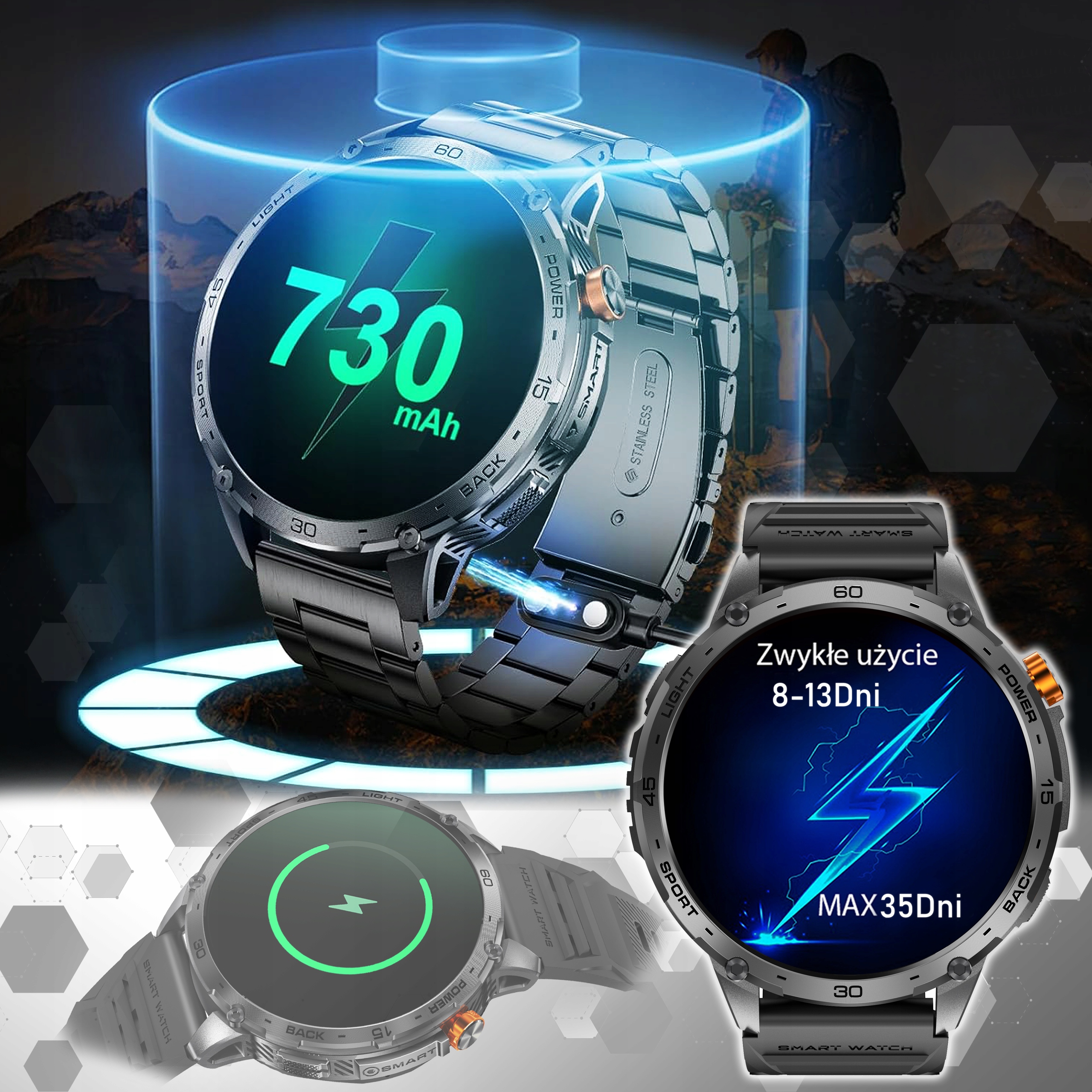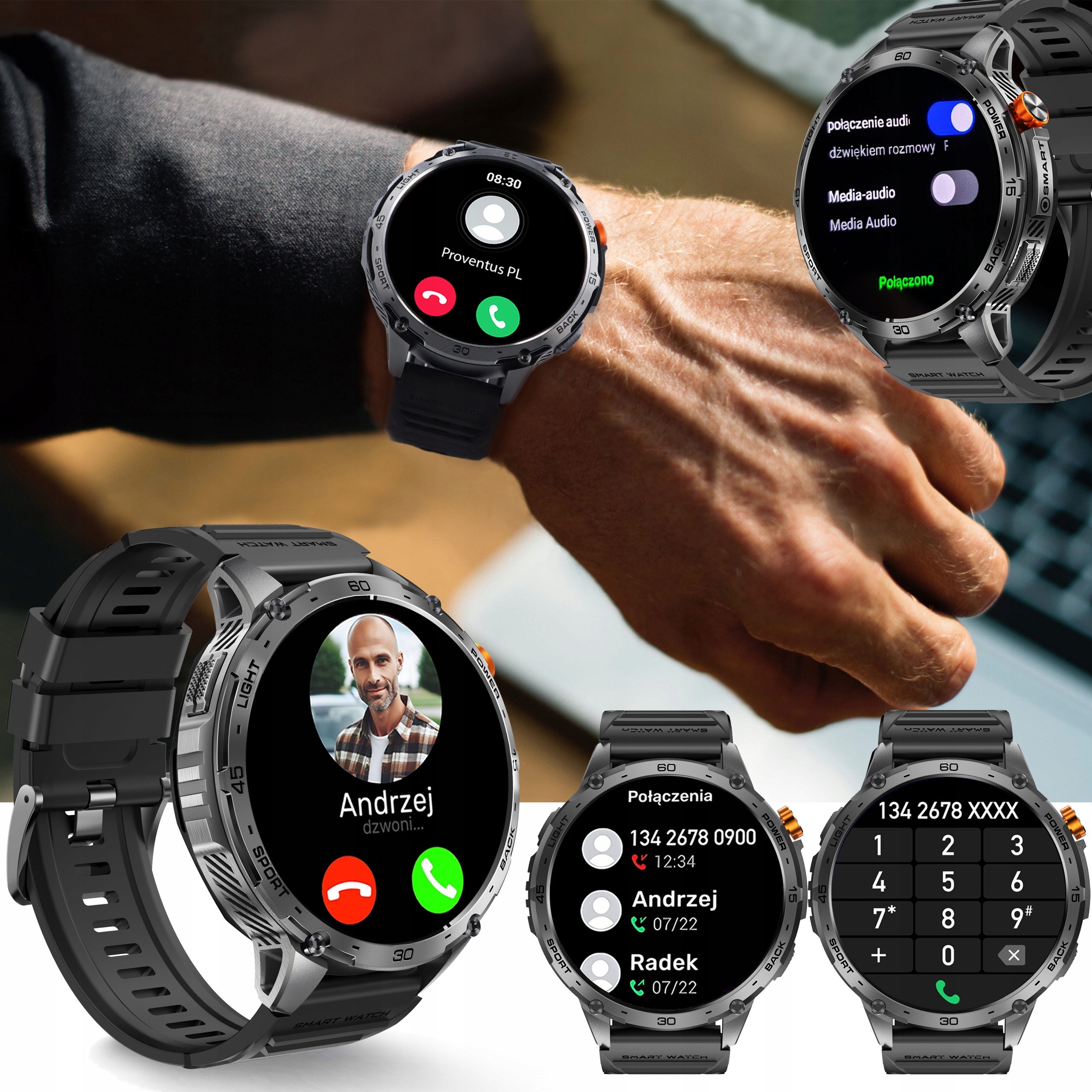 Smartwatch Męski Zegarek Proventus PTG69 - Wodoodporny 730mAh Latarka Puls Rozmowy