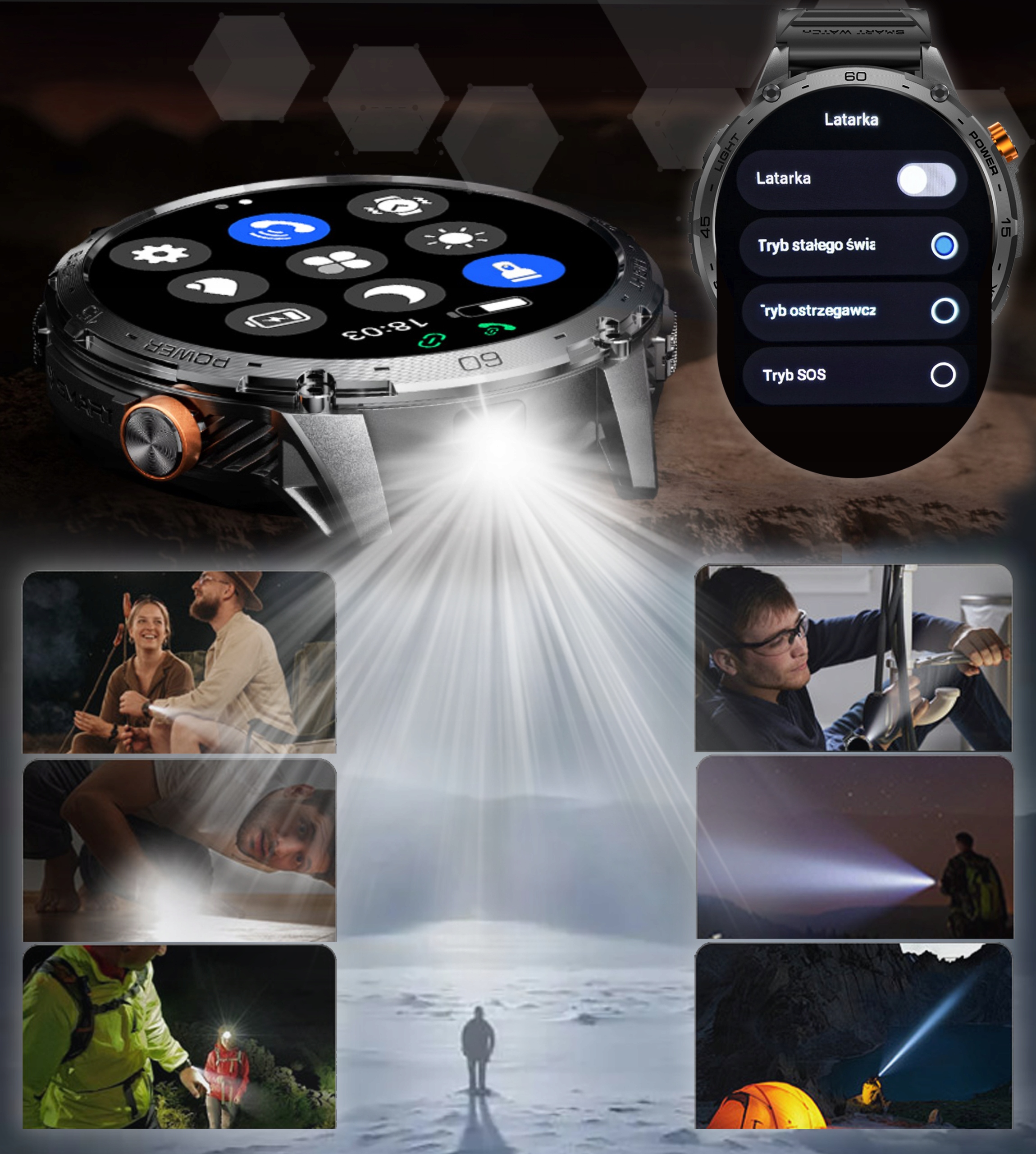 Niezależnie od tego, czy jesteś na nocnym treningu, eksplorujesz dziką naturę, czy potrzebujesz światła w domu, ta funkcja sprawia, że smartwatch staje się jeszcze bardziej praktycznym i niezawodnym towarzyszem.