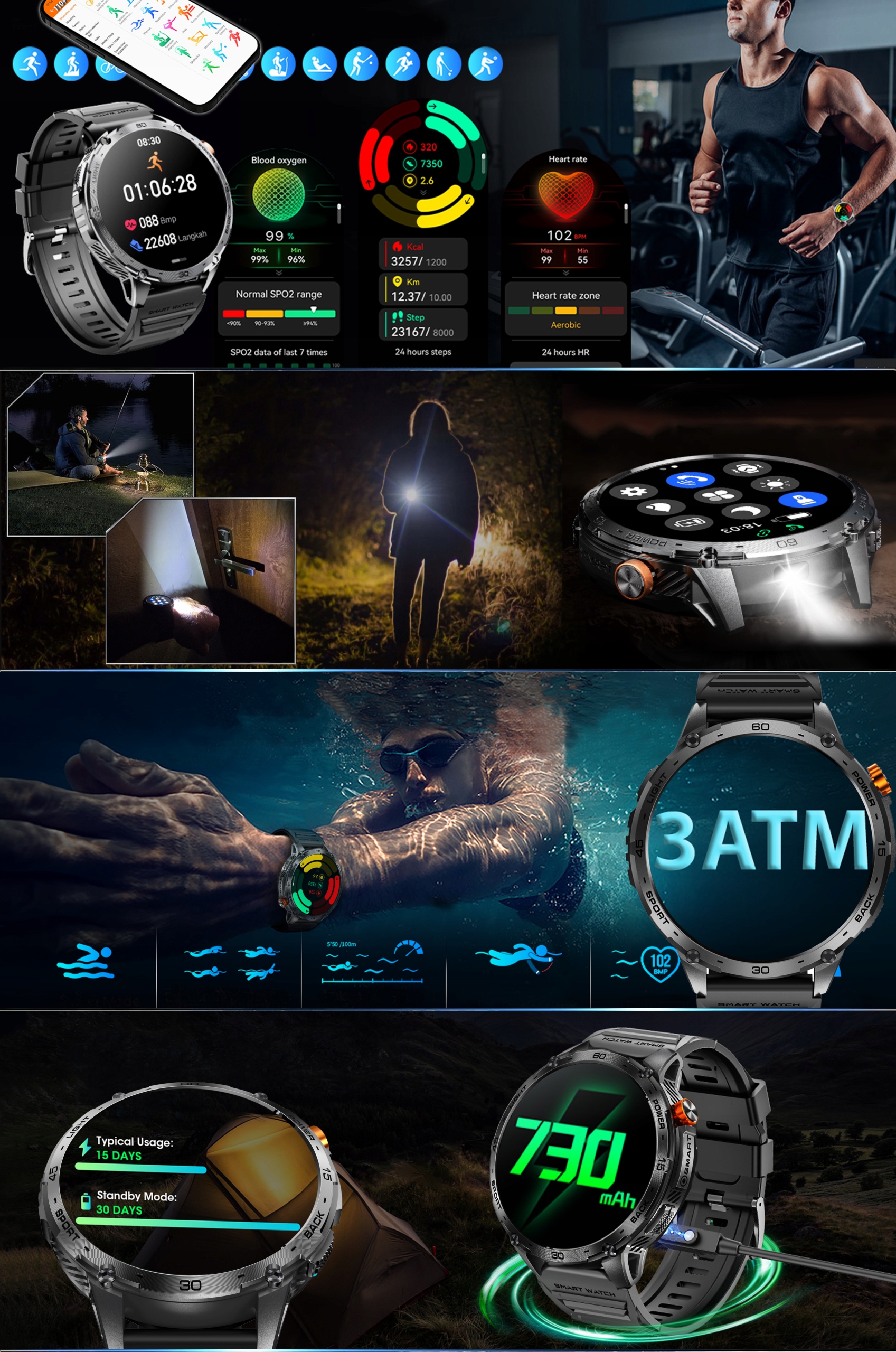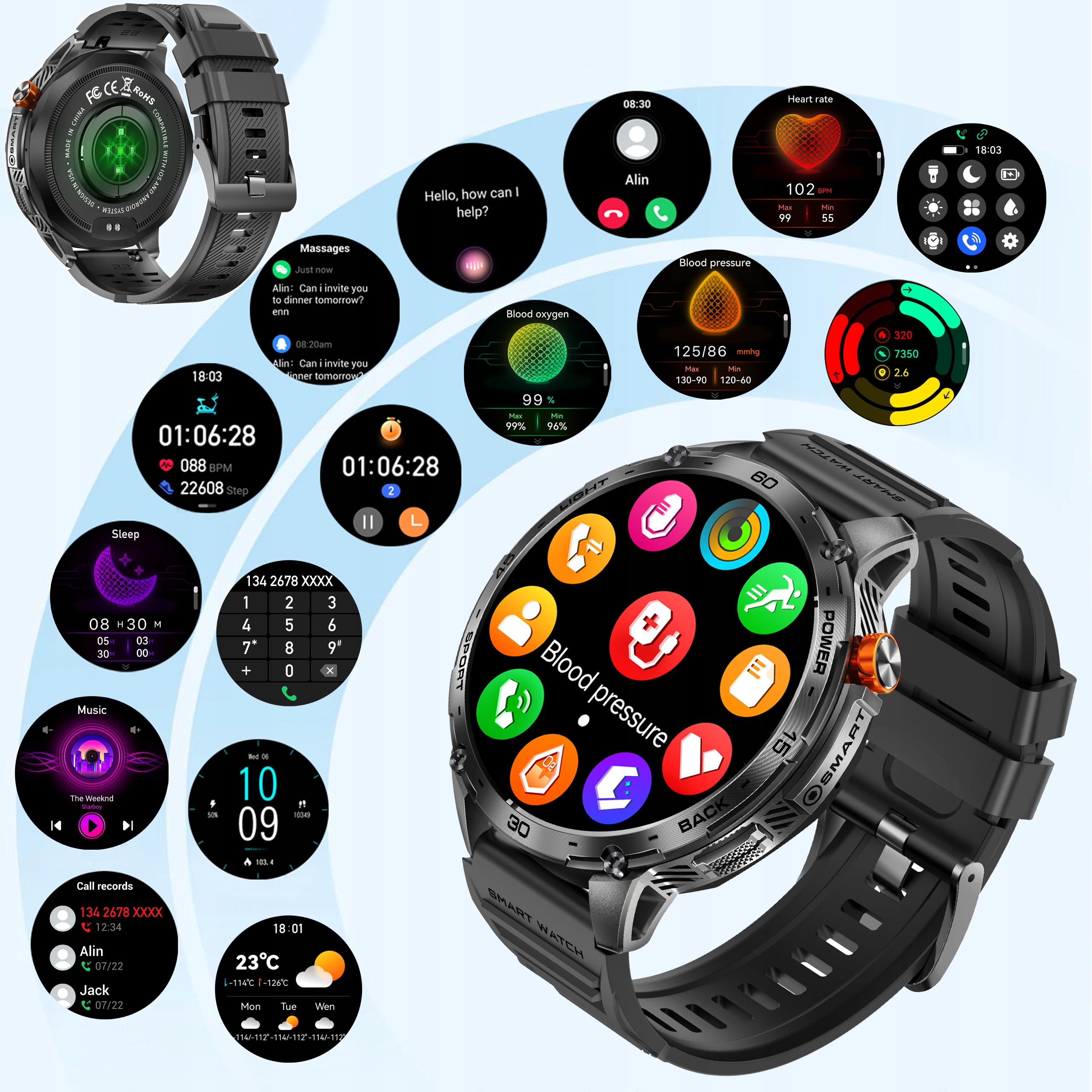 Jest to solidny zegarek z serii smart watch, który oprócz cech typowo sportowych i zdrowotnych posiada również praktyczny dodatek, który przyda się w każdej sytuacji – mocną latarką wbudowaną w górnej części koperty smartwatcha. Dzięki temu smartwatch można nosić zarówno jak na lewej, tak i na prawej ręce.