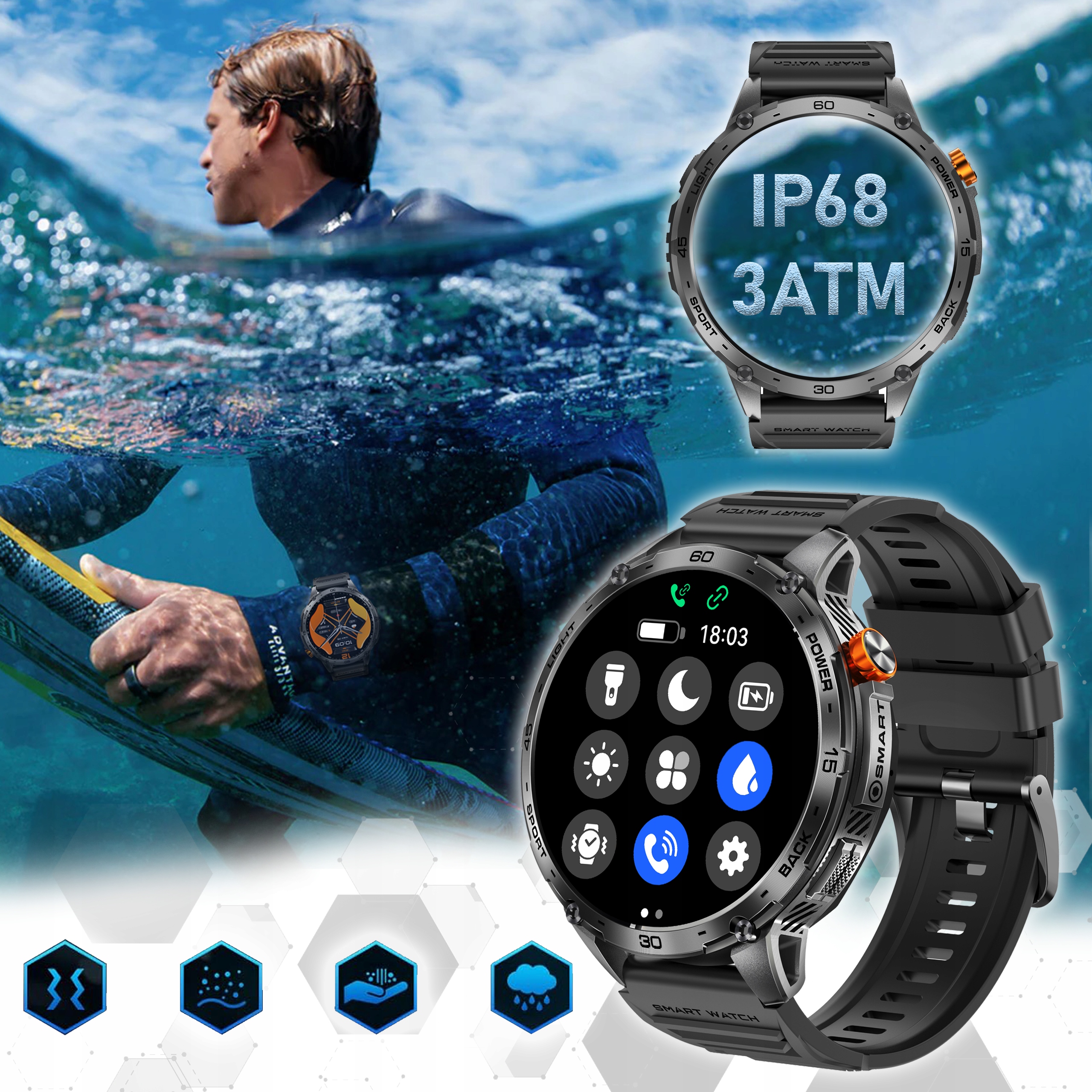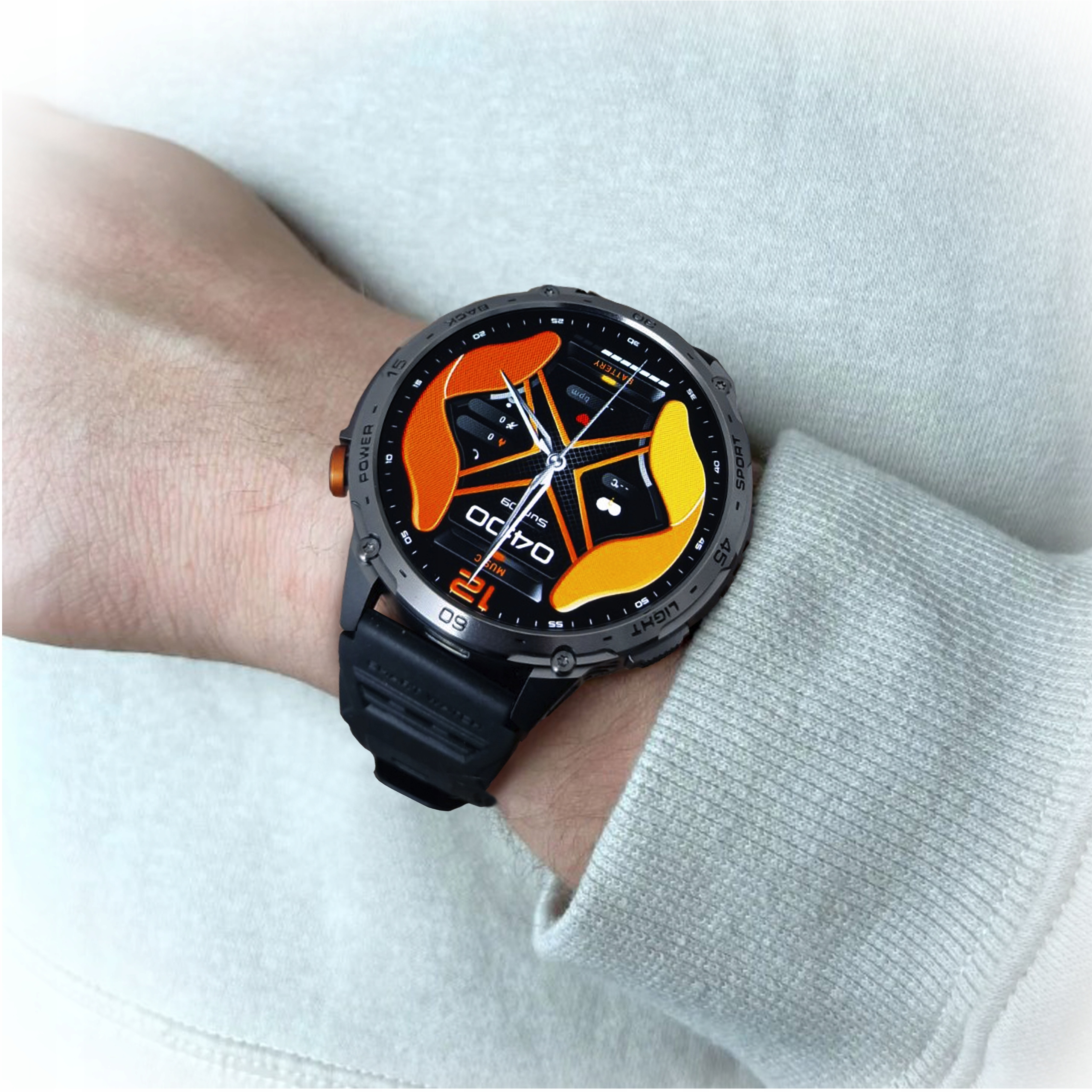 Obudowa smartwatcha wykonana z wysokiej jakości stali nierdzewnej 316L zapewnia wyjątkową trwałość i odporność na korozję, co pozwala na używanie zegarka w nawet najtrudniejszych warunkach. Wodoodporność do IP68 3ATM oraz pełną pyłoszczelność.
